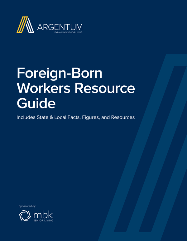 Argentum is proud to present the first edition of our Foreign-Born Workers Resource Guide. The purpose of this guide is to provide a reliable and easy-to-use resource that connects foreign-born individuals working in the senior living industry, their families, and stakeholders with important organizations and service providers at both the national and state levels. This comprehensive resource guide aligns with Argentum’s overall Workforce Development and Policy initiatives, and we are confident that the guide will serve as a valuable tool that can help facilitate inclusion, create connected communities, and address key challenges faced by foreign-born employees and their families.
